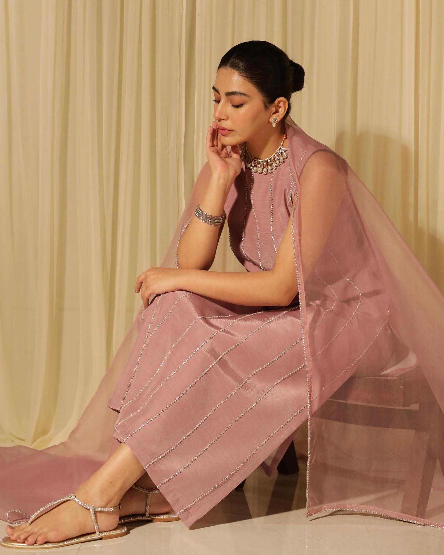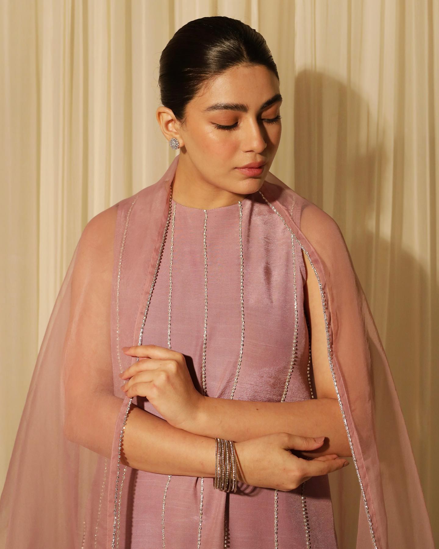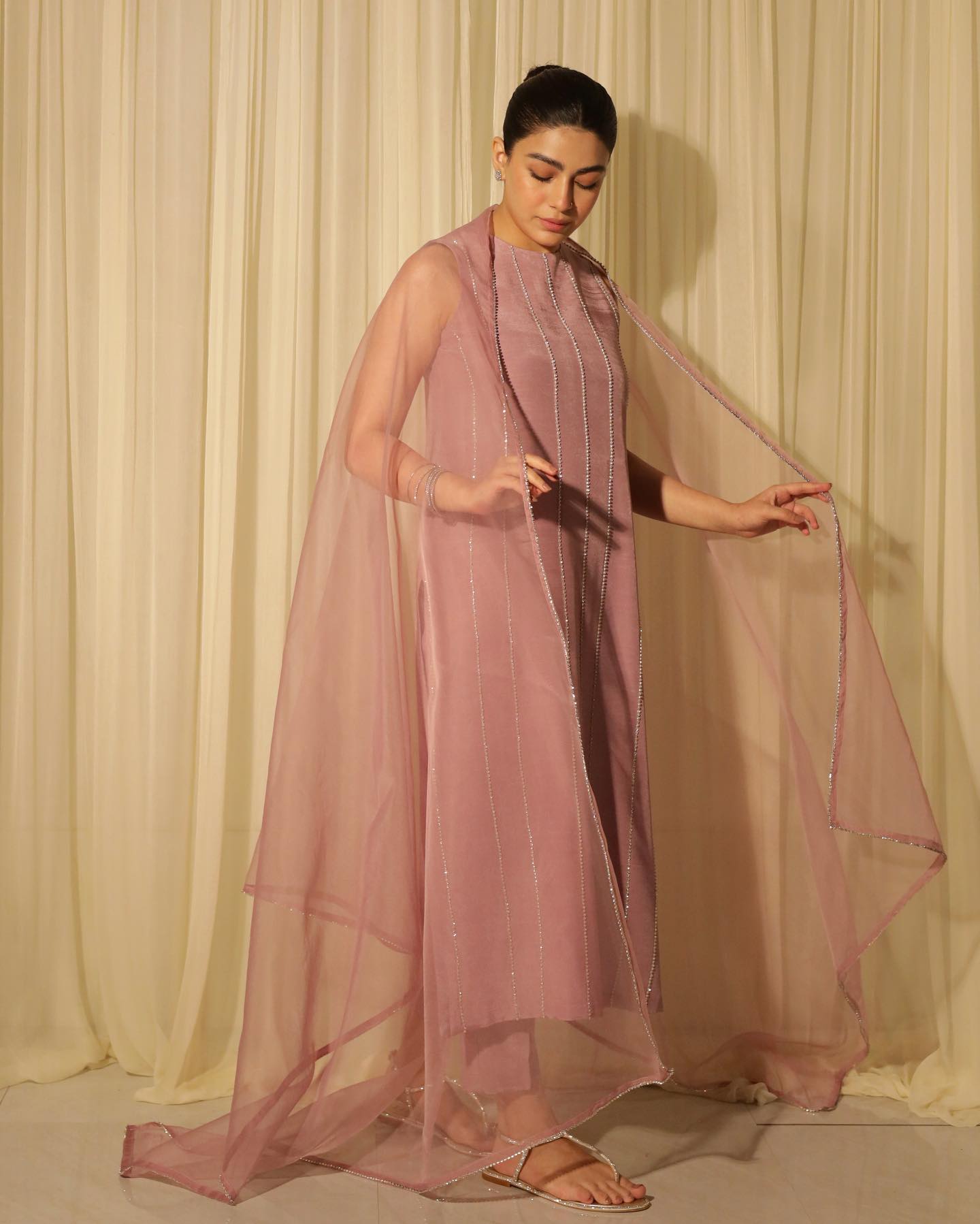 The matching trouser ensures both style and comfort, while the Organza Dupatta adds an ethereal touch with crystal handwork on its corners.